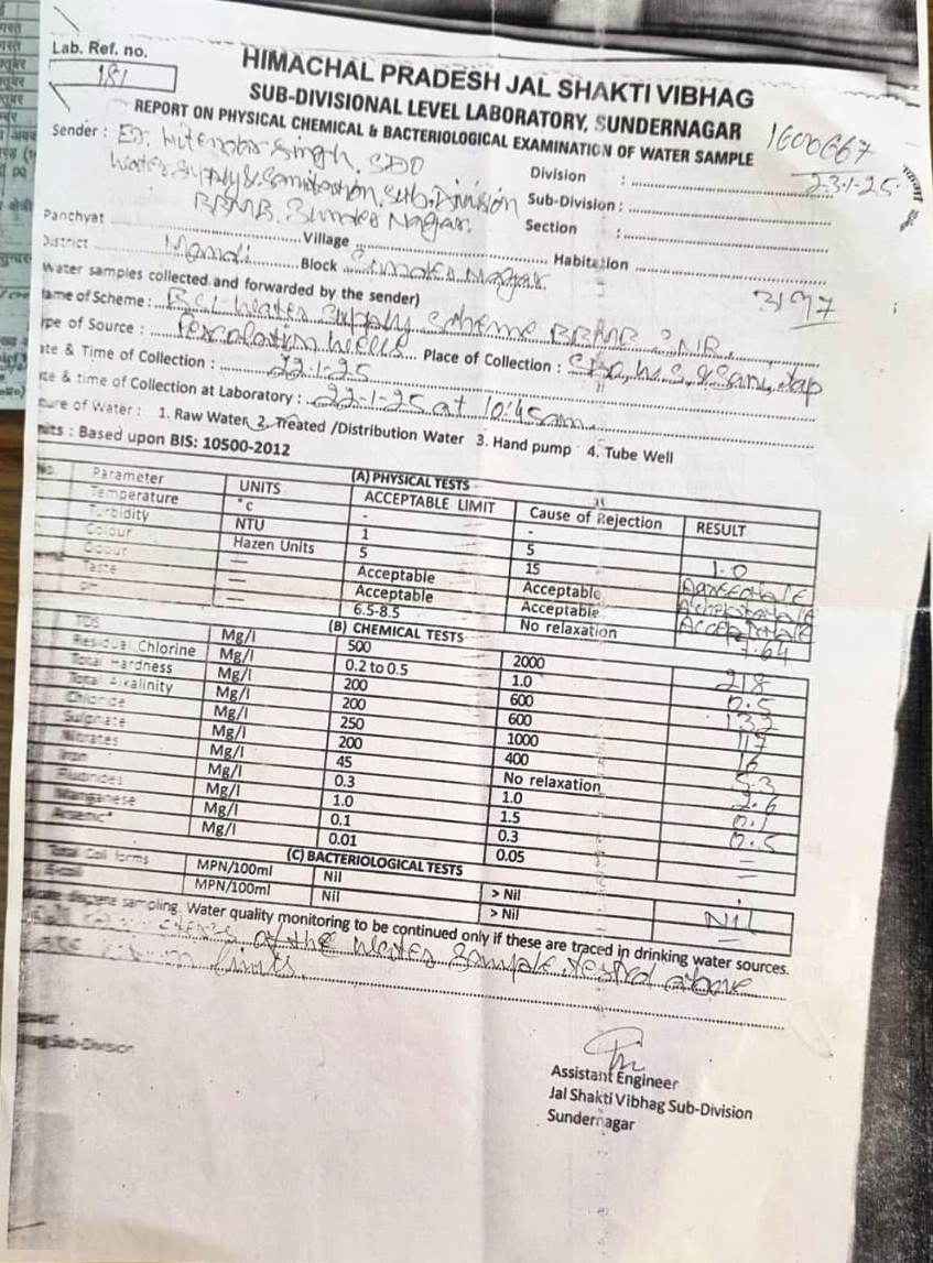 Public Health Water Sample Report |